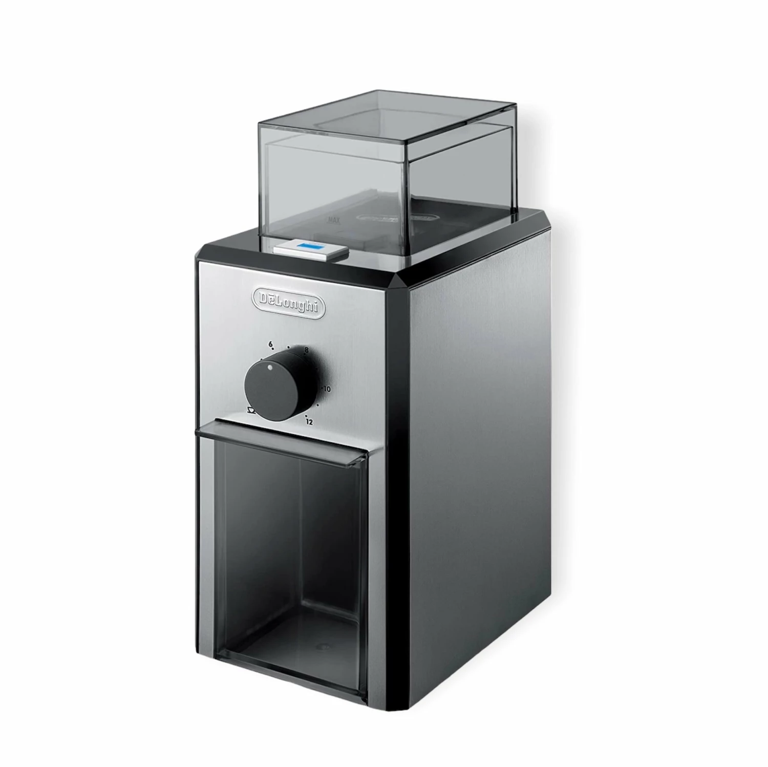 Delonghi’s burrs system is safe to use and the grinder will automatically come to a stop if the lid is opened when in use. The container comes away easily to reduce mess when extracting your fresh grounds, so filling your espresso machine will always be quick, easy and convenient. DeLonghi coffee grinders are easy to maintain, and come with a stiff-bristled brush to help remove old grounds and keep the machine clean and fresh so you can enjoy perfect coffee every time.